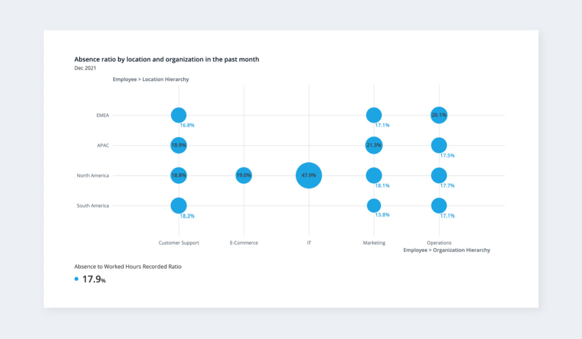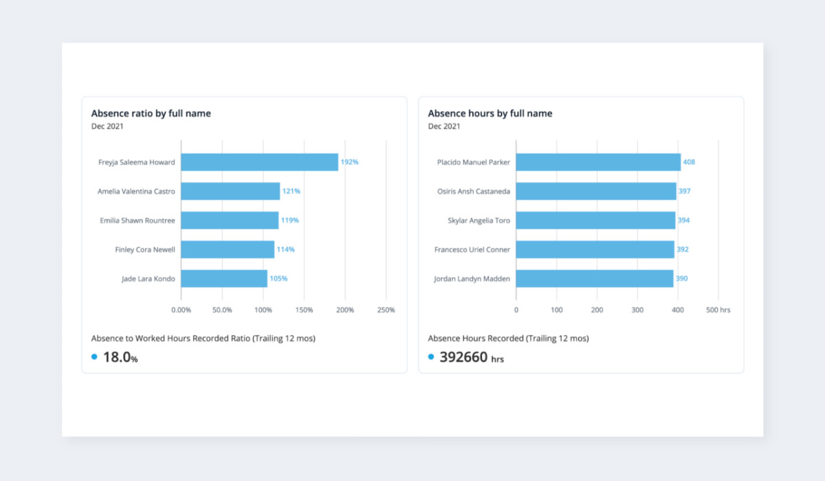 Absentee data can help you understand which employees have high absenteeism and identify specific departments, divisions, geographic locations, roles, or even demographic populations are experiencing high levels of absenteeism. Dive deeper with these questions: