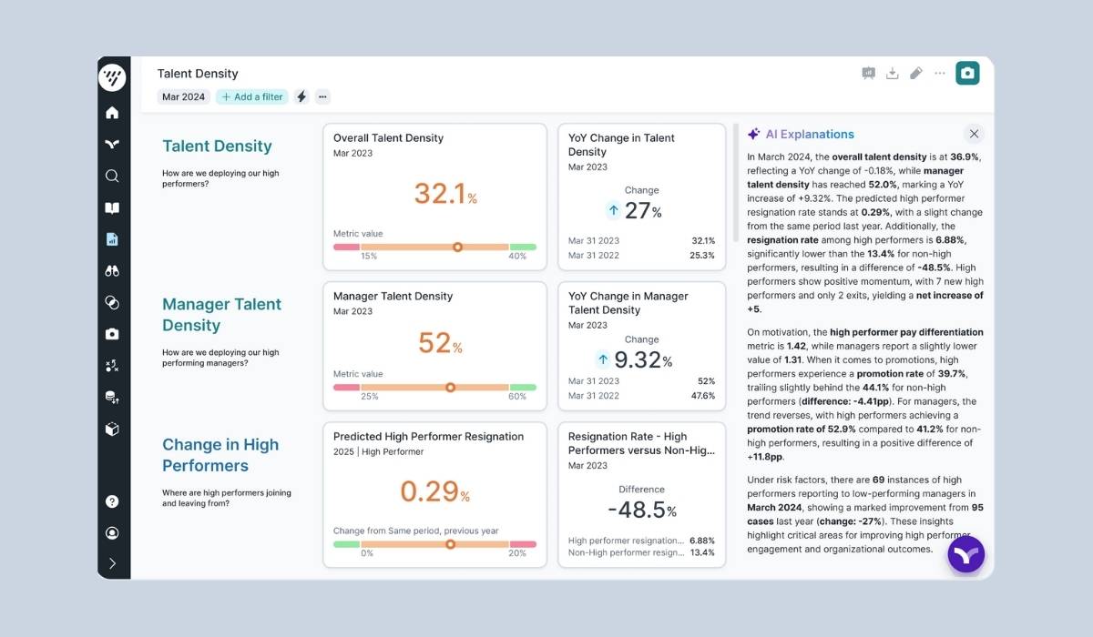 The problem? Most HR teams use static dashboards filled with lagging indicators like engagement scores, compa-ratios, or DEI targets. This only provides disconnected data that doesn't reveal cause-and-effect relationships or provide real-time insights.