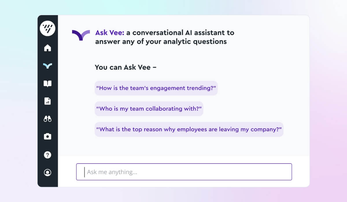 Vee delivers people answers at scale so anyone, regardless of data literacy, can quickly find answers to business-critical workforce questions.